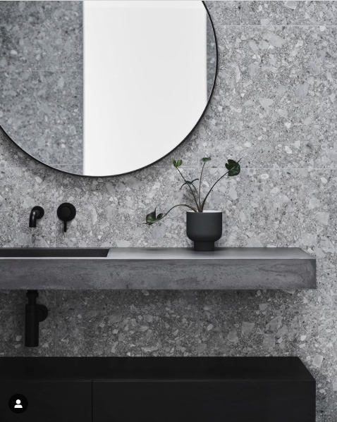 For those who love an open airy look to their bathroom, a wall-mounted polished concrete vanity top with wall taps, is a perfect choice.